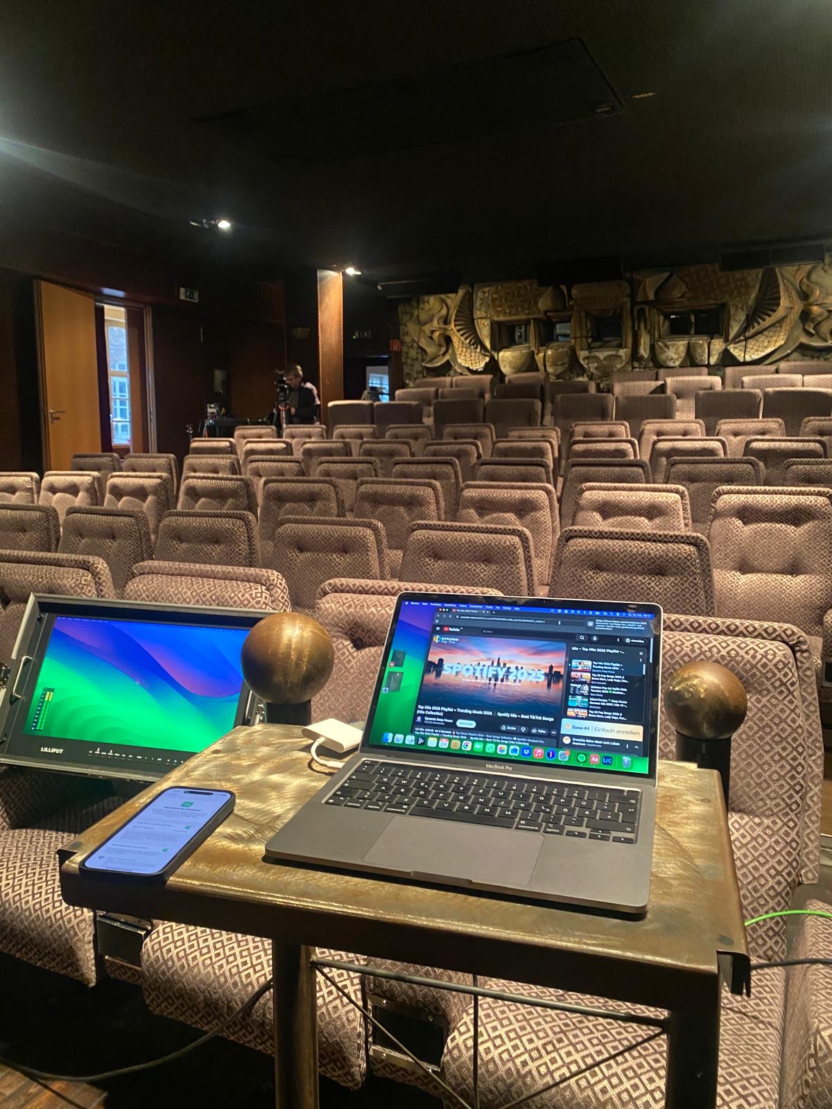 Ein Kino ist keine klassische Eventfläche. Kaum Beleuchtung. Keine Steckdosen. Lange Kabelwege. Besondere Anforderungen in einer mehr als besonderen Atmosphäre.