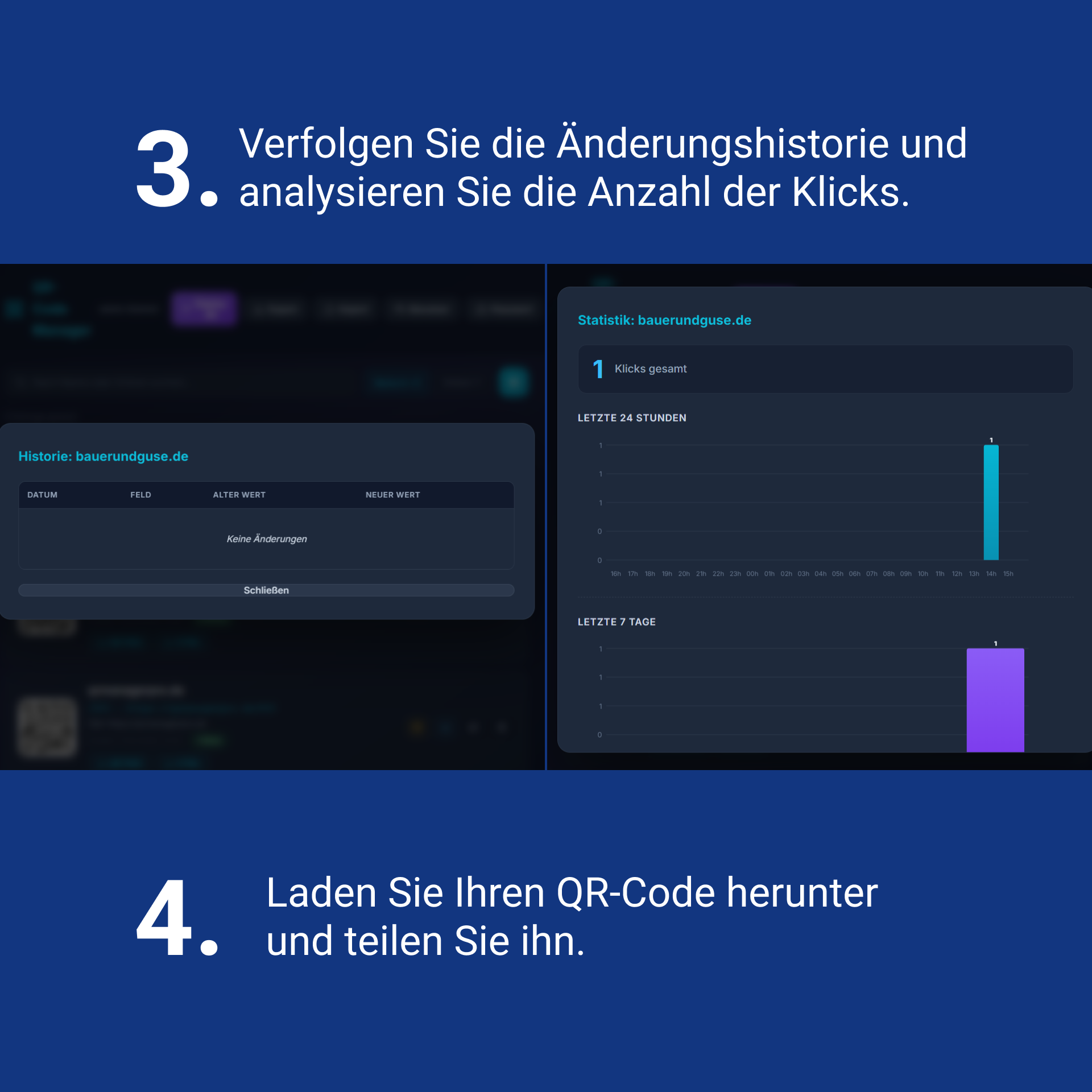 Antwort: Wenn mehrere Personen in einem Team arbeiten, kann es schnell unübersichtlich werden. Die Historie dokumentiert genau, welcher Nutzer zu welcher Uhrzeit die Ziel-URL eines Codes geändert hat. Das sorgt für maximale Transparenz.