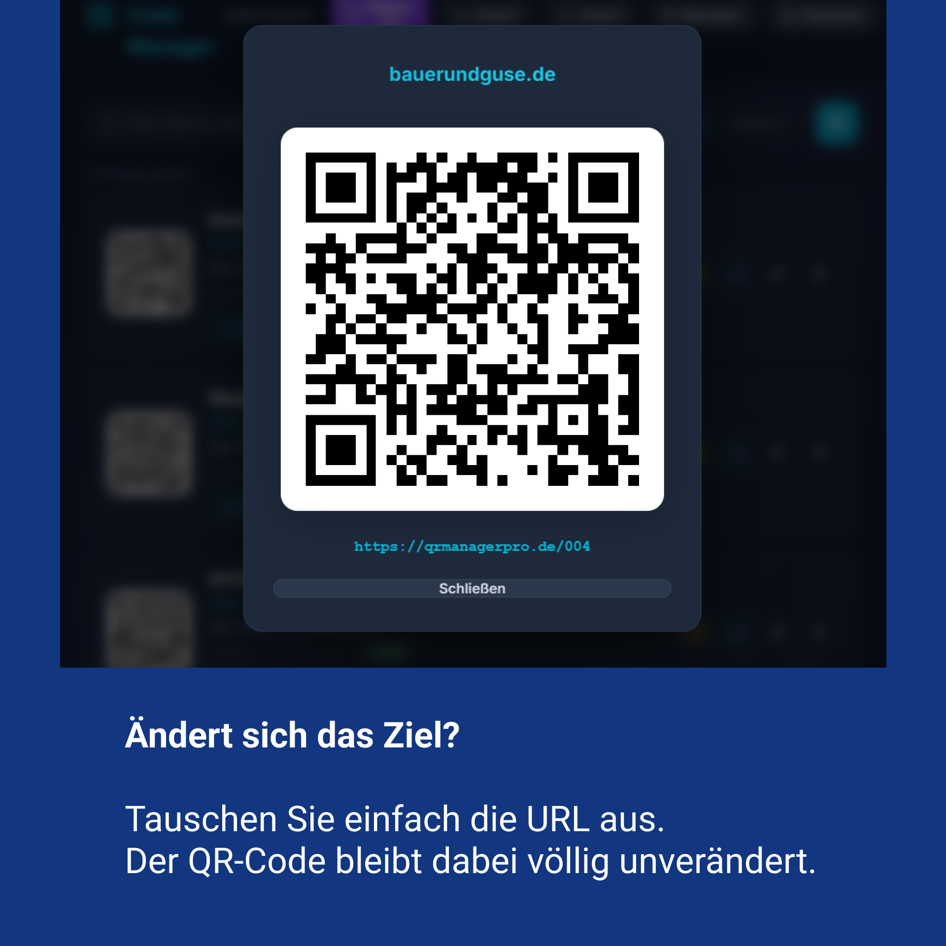 Antwort: Nein, das ist der Hauptvorteil unserer Software. Sie loggen sich einfach in QRmanagerPro ein, ändern die Ziel-URL des betreffenden Codes, und sofort leiten alle bereits gedruckten Flyer auf das neue Angebot um.